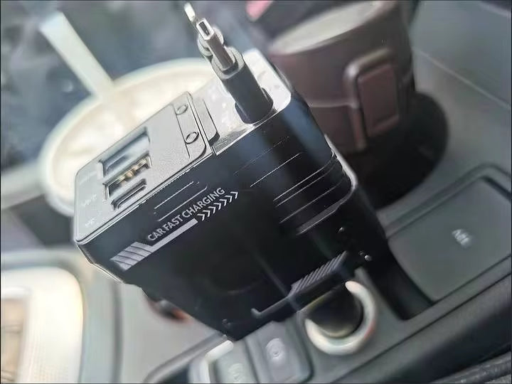- Cargador de Auto 4-en-1 con cabezal ajustable de 180°.