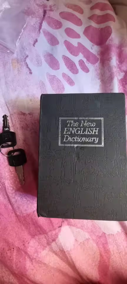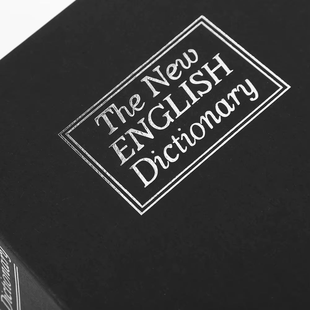 Este “Diccionario de Secretos” está diseñado para confundirse con cualquier libro de tu biblioteca. Por fuera, un clásico diccionario en inglés. Por dentro, una caja fuerte de acero con cerradura y dos llaves.