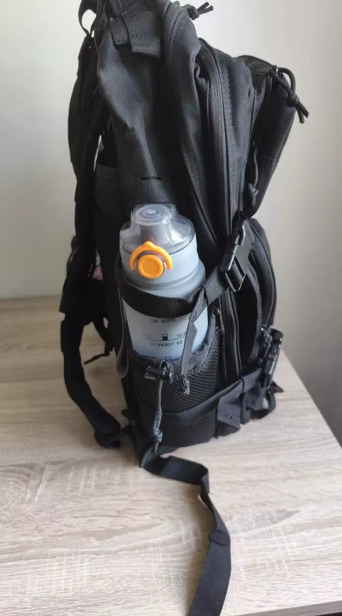 El sistema Molle es una serie de correas de nylon que permiten acoplar equipo adicional, como bolsas, porta-botellas y otros accesorios tácticos, para personalizar la mochila según tus necesidades.