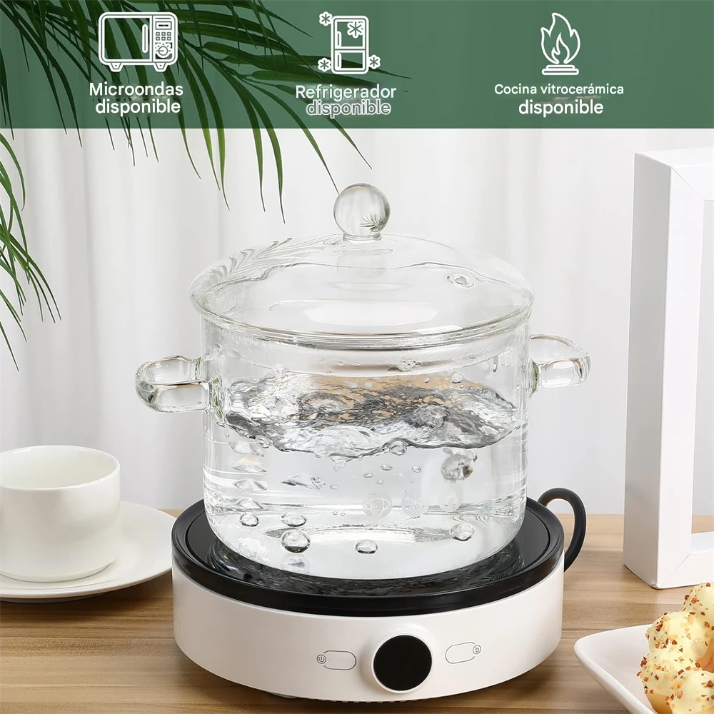 Hecha de vidrio borosilicato de grado alimenticio, libre de plomo y más segura que el plástico o el acero, esta olla de 1.5 litros te permite ver cómo se cocina tu comida gracias a su innovador diseño transparente.