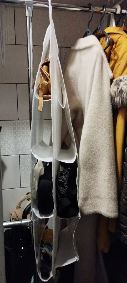 Ahorro de espacio: Su diseño colgante aprovecha el espacio vertical de tu armario, ocupando muy poco lugar.
