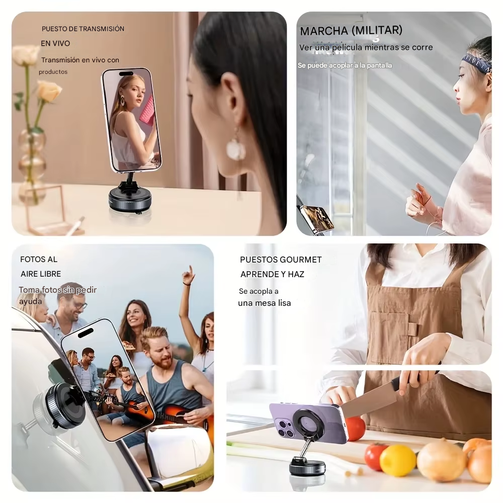 ✅ Imán ultrafuerte + ventosa de vacío: Soporta movimientos bruscos, vibraciones del auto y hasta bailes de cocina. ¡Nunca más perderás tu celular!