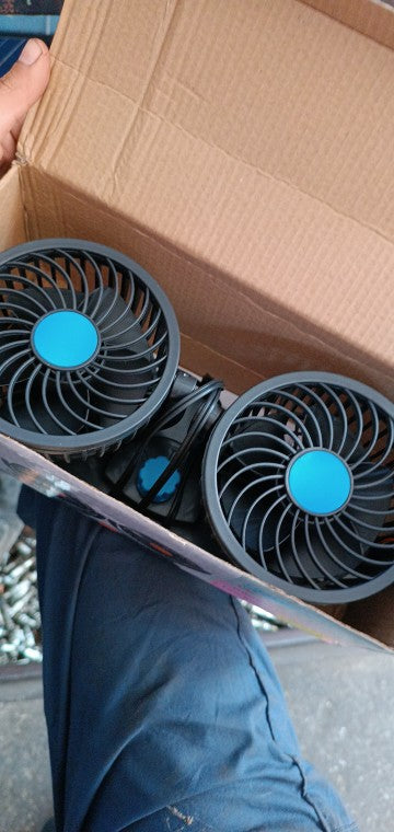 Ventilador portátil de 12 V para auto con velocidad ajustable, fuerte y débil, diseño de cabezal doble para satisfacer las necesidades de diferentes personas.